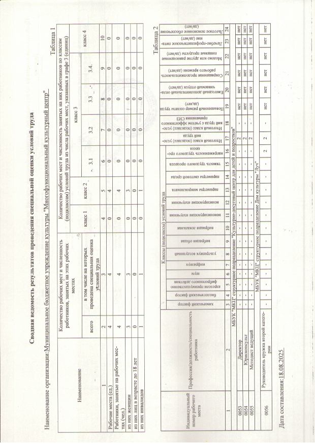 Сводная ведомость результатов проведения специальной оценки условий труда 30.11.2022