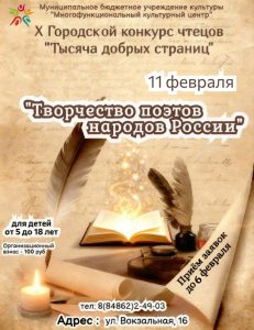 Друзья, любители поэзии и красивых слов! Пришло время раскрыть ваши таланты! 🎤 Мы объявляем старт городского конкурса чтецов «Тысяча добрых страниц»! 📌 В 2026 году конкурс посвящён Году единства народов России! Тема выступлений — «Творчество поэтов народов России». Это прекрасный шанс открыть для себя и зрителей всё богатство и красоту поэтического слова нашей многонациональной страны. […]