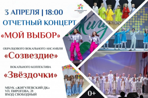 3 апреля — отчетный концерт «Мой выбор» Образцовый вокальный ансамбль «Созвездие» и вокальный коллектив «Звёздочки» (рук. Ермилина Ю.А.) представляют отчетную концертную программу «Мой выбор». Мероприятие пройдет на сцене МБУК «Жигулевский ДК» (ул. Пирогова, 21). «Мой выбор» — это не просто название. Это признание в любви к музыке, к сцене и к зрителям. Юные артисты, занимающиеся […]